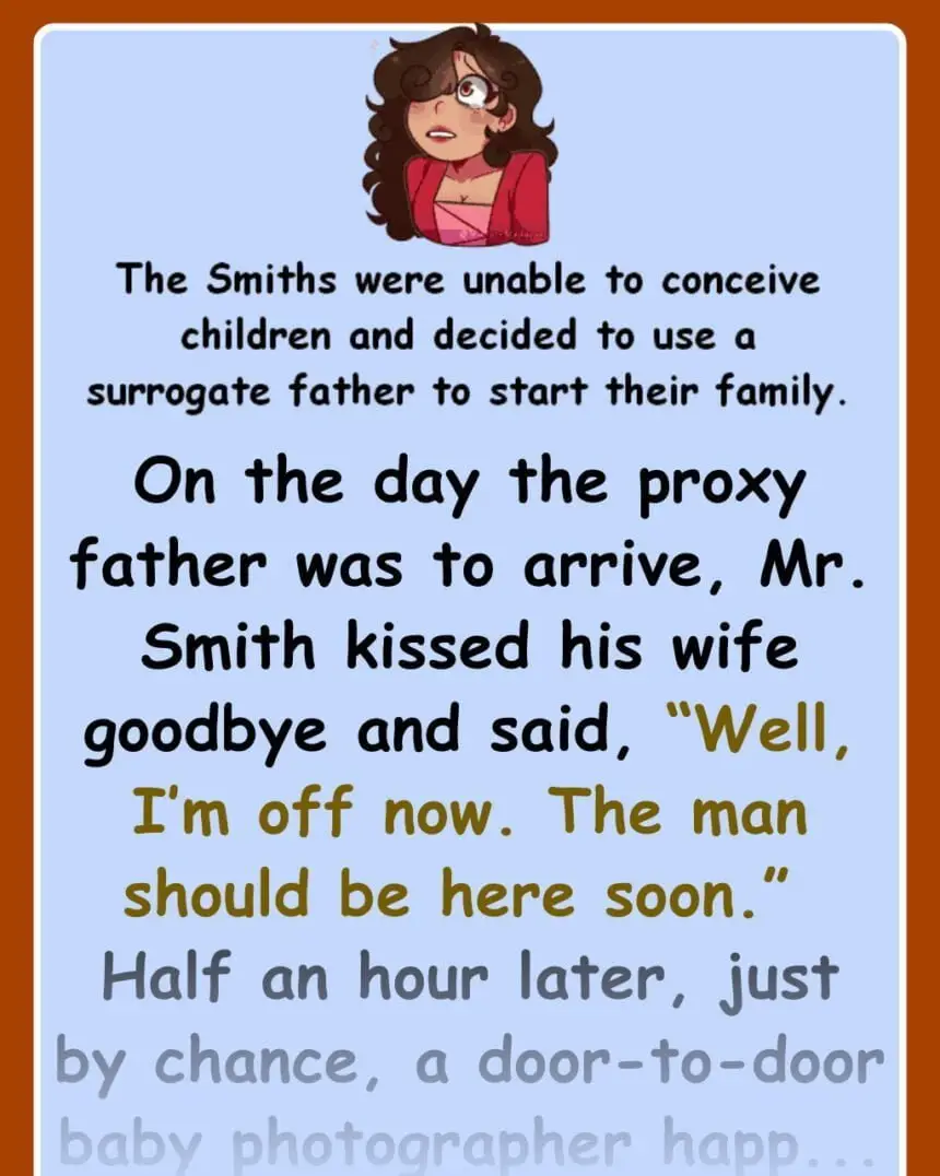 On the day the proxy father was to arrive, Mr. Smith kissed his wife goodbye and said, “Well, I’m off…