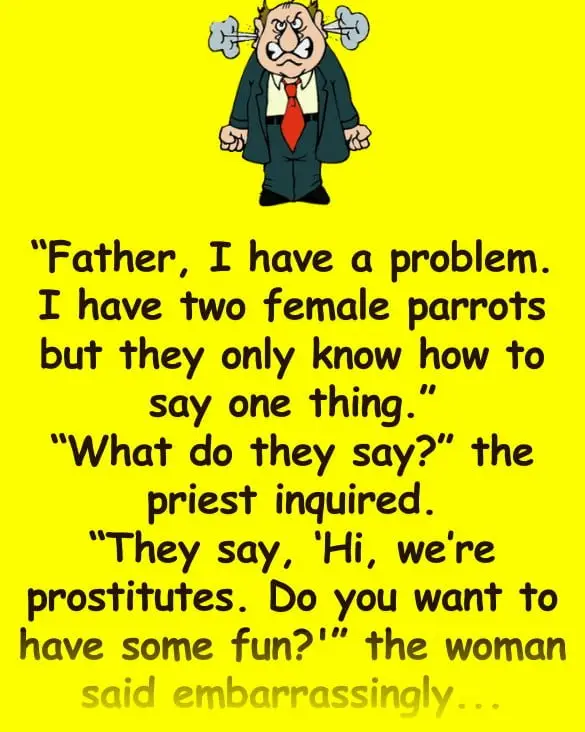 “Father, I have a problem. I have two female parrots but they only know how to say one thing.”“What do…