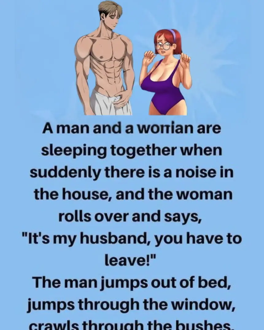 A man and a woman are sleeping together when suddenly there is a noise in the houseThe woman rolls over…