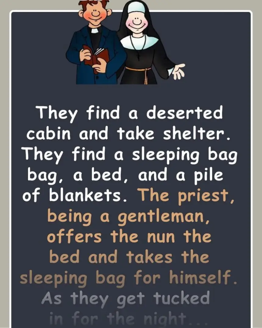 They find a deserted cabin and take shelter. They find a sleeping bag ba The priest, being a gentleman, offers…