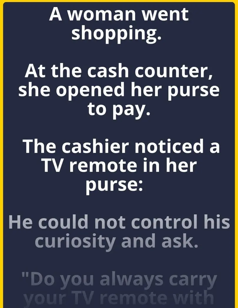 A Woman Went Shopping. –At the cash counter, she opened her purse to pay.The cashier noticed a TV remote in…