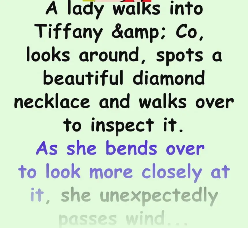A lady walks into Tiffany & Co, looks around, spots a beautiful diamond necklace and walks over to inspect it.As…