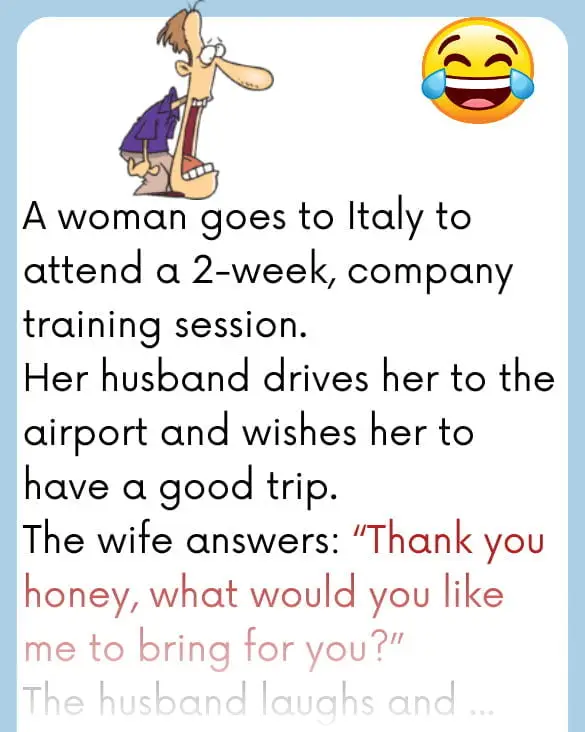 A woman goes to Italy to attend a 2-week, company training session.Her husband drives her to the airport and wishes…