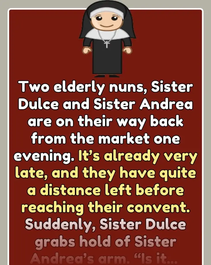 Two elderly nuns, Sister Dulce and Sister Andrea are on their way back from the market one evening. It’s already…