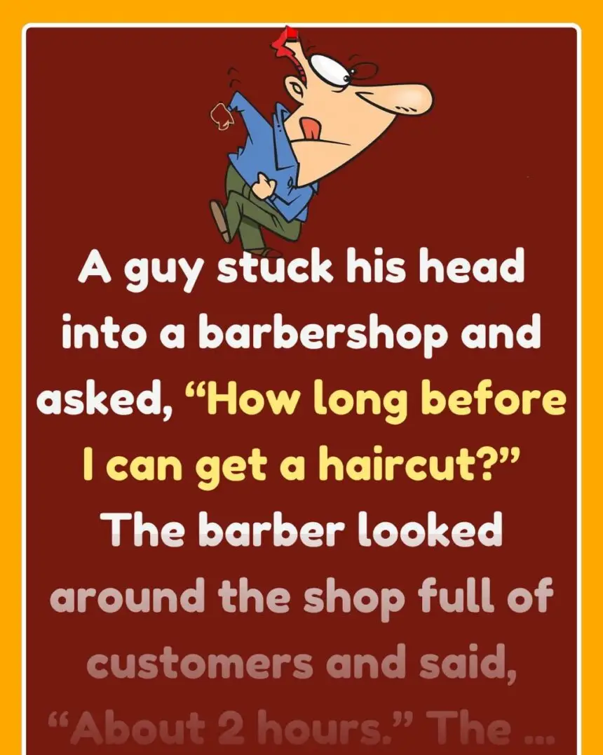 A guy stuck his head into a barbershop and asked, “How long before I can get a haircut?”The barber looked…