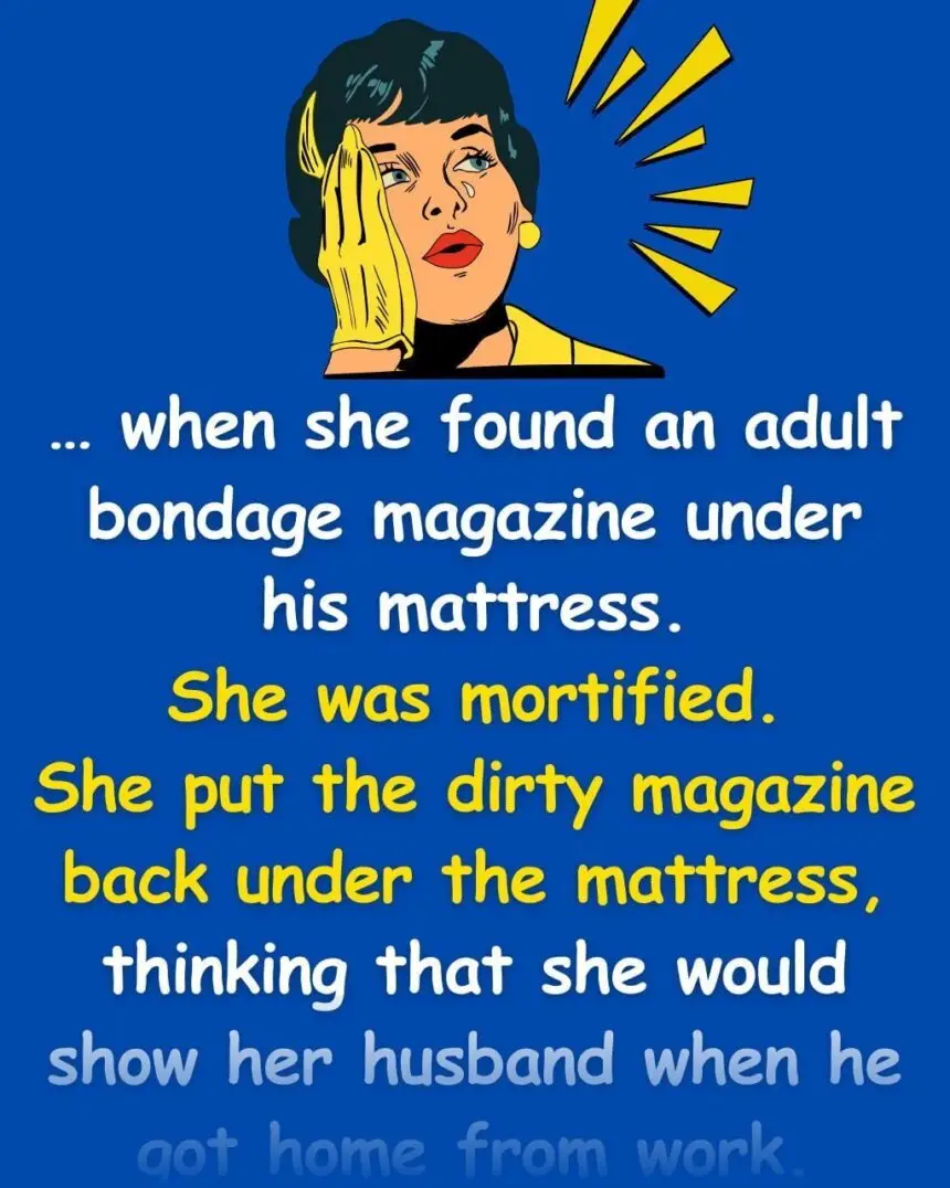 … when she found an adult bondage magazine under his mattress.She was mortified.She put the dirty magazine back under the…