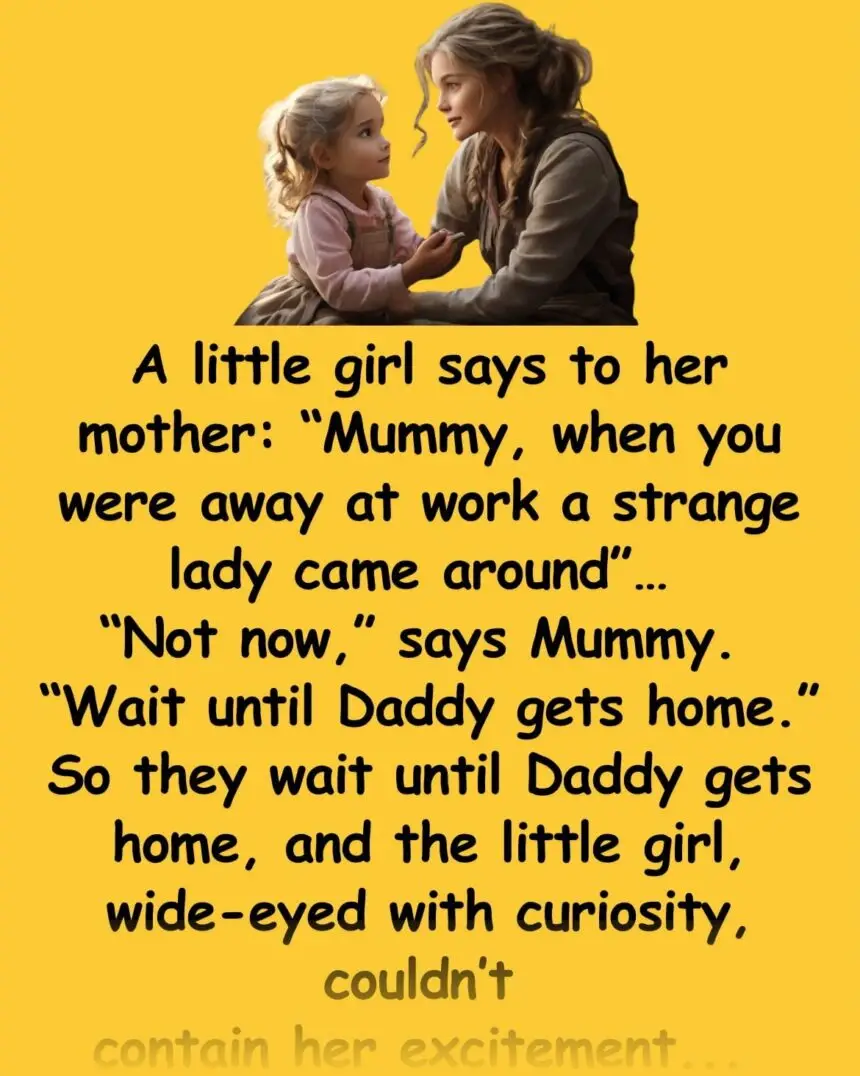 A little girl says to her mother: “Mummy, when you were away at work a strange lady came around”… “Not…