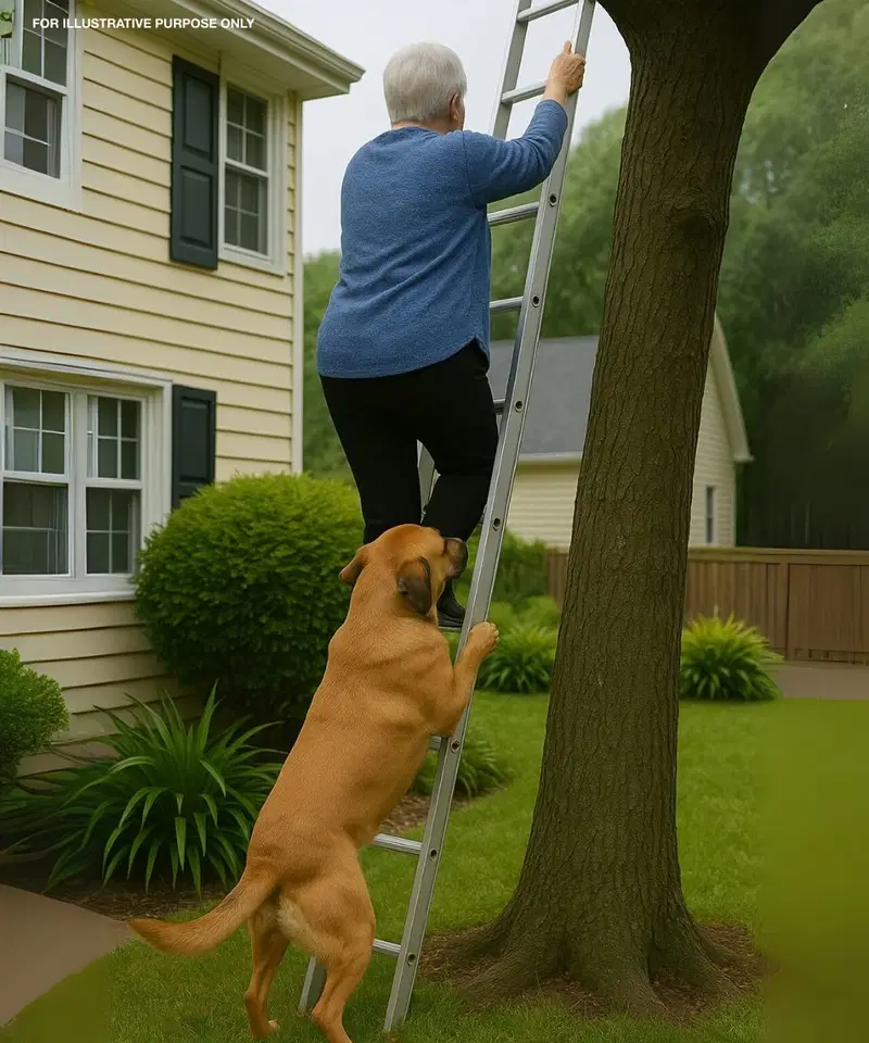 I had climbed the ladder to trim branches when suddenly my dog caught the cuff of my trousers in his…