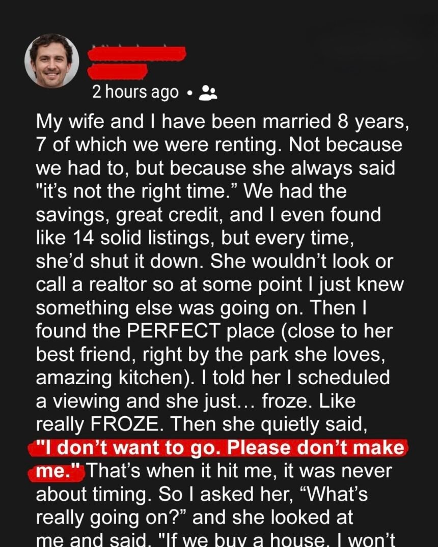 For years, I couldn’t understand why my wife Jane refused to buy a house. We had the money, the credit,…
