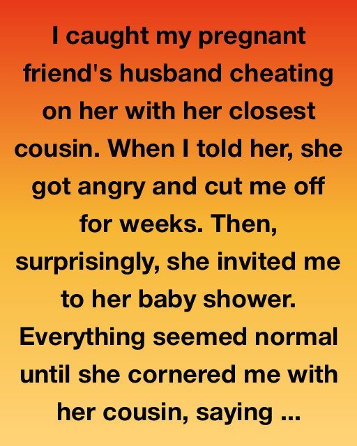 I caught my pregnant friend’s husband cheating on her with her closest cousin. When I told her, she got angry…
