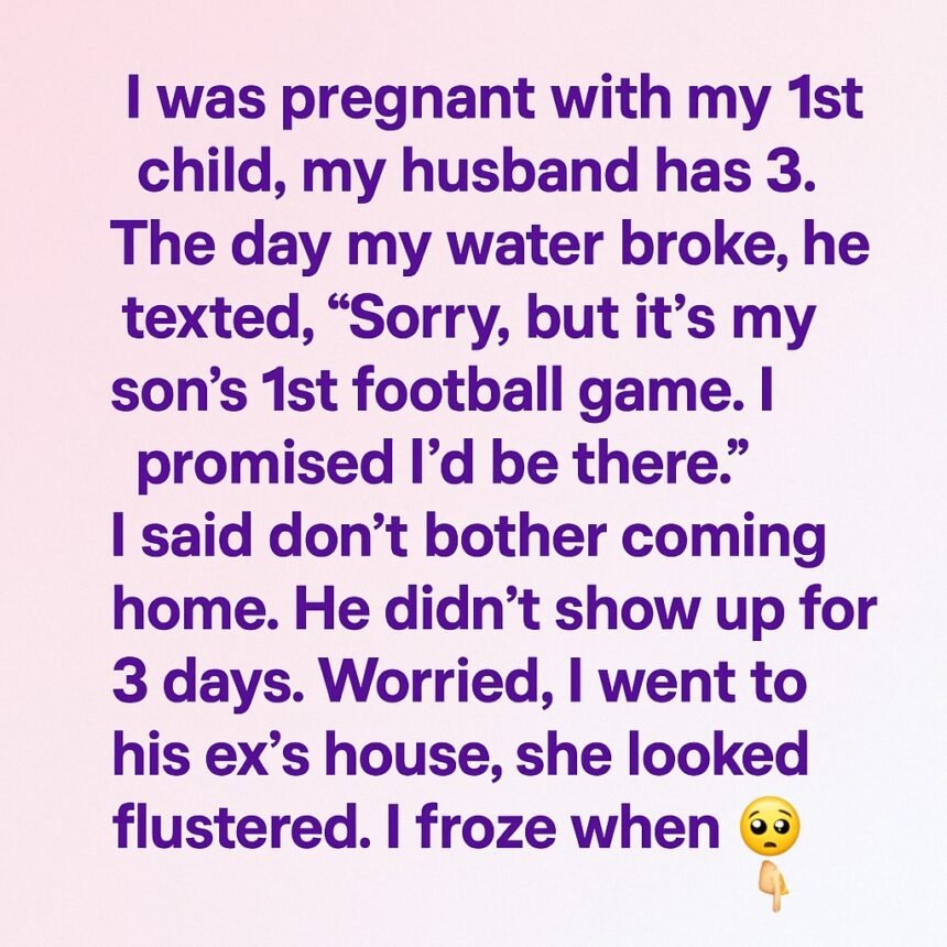 I was pregnant with my 1st child, my husband has 3. The day my water broke, he texted, “Sorry, but…
