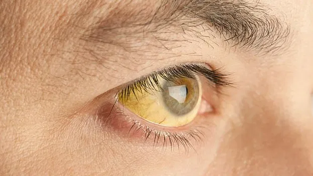 Yellowness in the whites of the eyes (sclera) is a classic sign of jaundice, associated with liver problems such as hepatitis or severe liver damage.