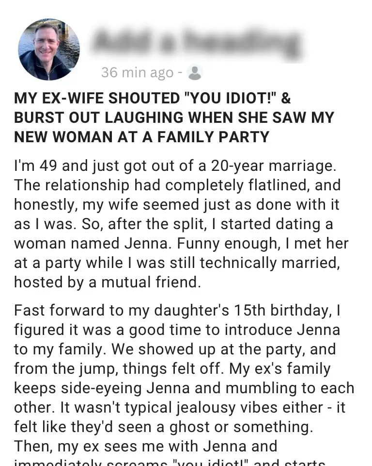 After my divorce, I introduced a new woman at a party, and my ex-wife exclaimed, “You fool!” and then broke into laughter.