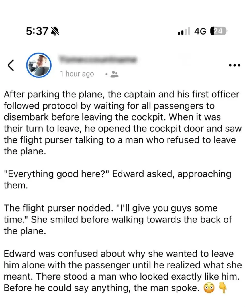 Before Disembarking Plane, Pilot Notices Last Passenger inside Who Is a Carbon Copy of Him