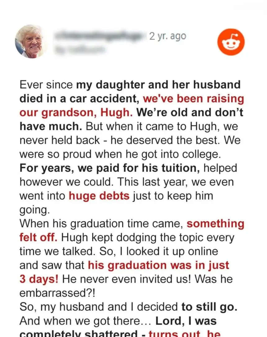 An elderly couple spent their final savings on their grandson’s education, only to be left out of his graduation celebration