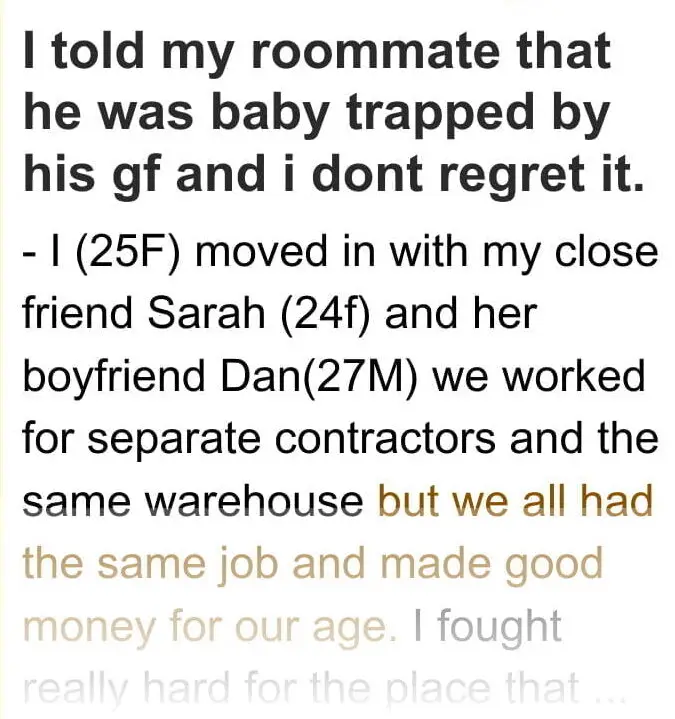 I told my roommate/firend that he was baby trapped by his gf and i dont regret it.