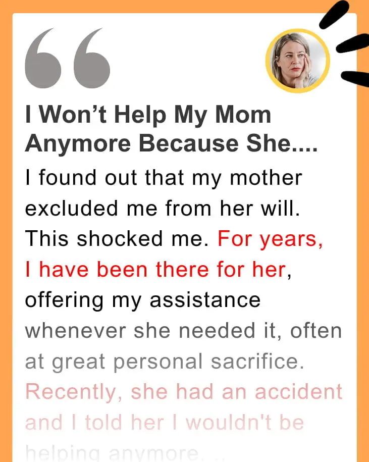 I Won’t Help My Mom Anymore Because She Excluded Me From Her Will