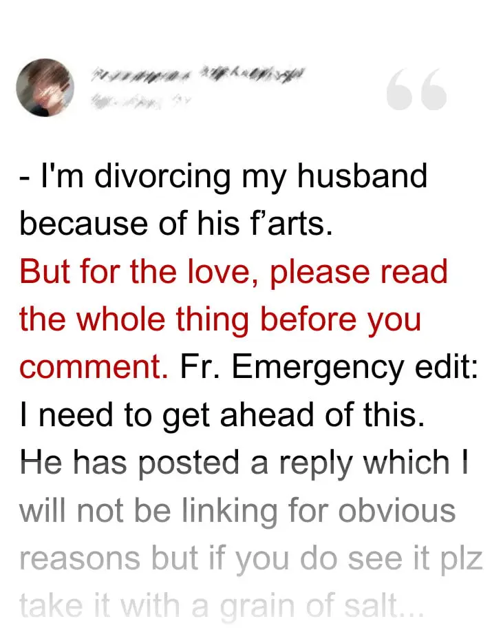 I’m divorcing my husband because of his f’arts & also everyone thinks I’m the honeycomb wife