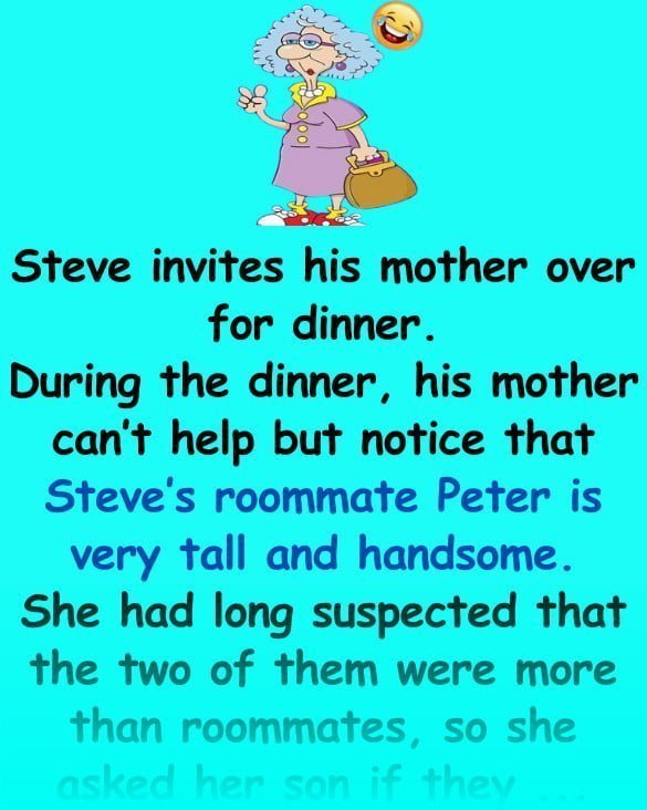 During the dinner, his mother can’t help but notice that Steve’s roommate Peter is very tall and handsome.
