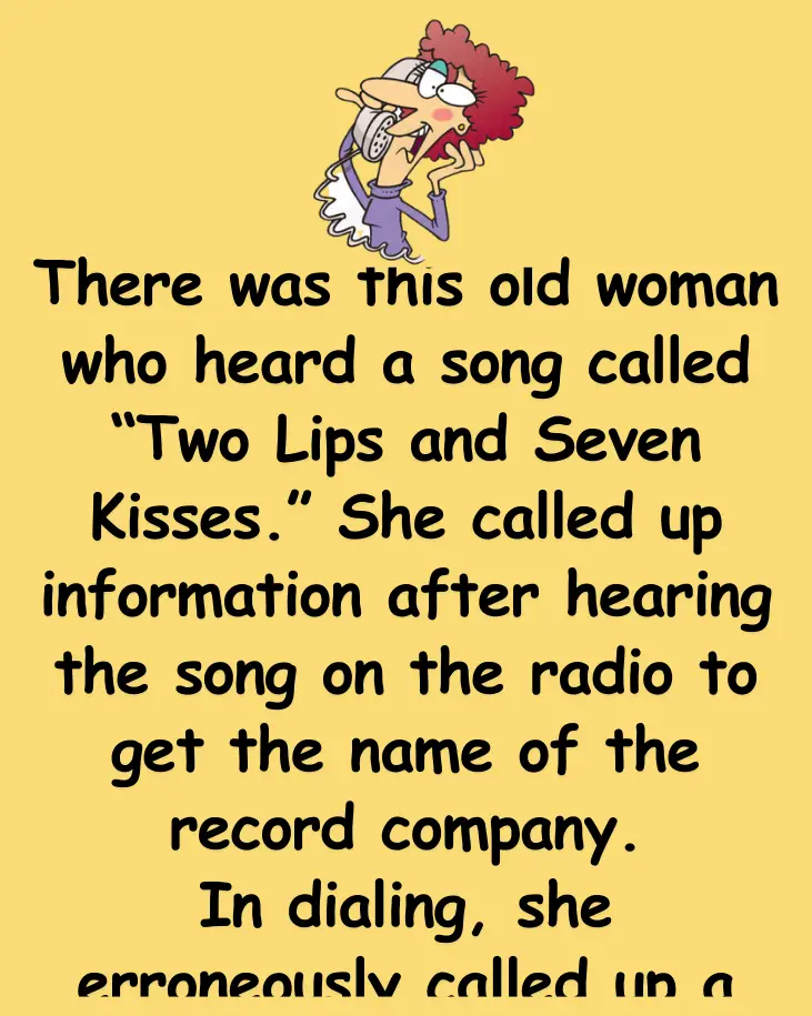 There was this old woman who heard a song called “Two Lips and Seven Kisses.” She called up information after hearing the song on the radio to get the name of the record company.